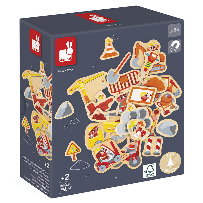 Get ready to dig, build, and create with the Construction Equipment Wooden Magnet Set!