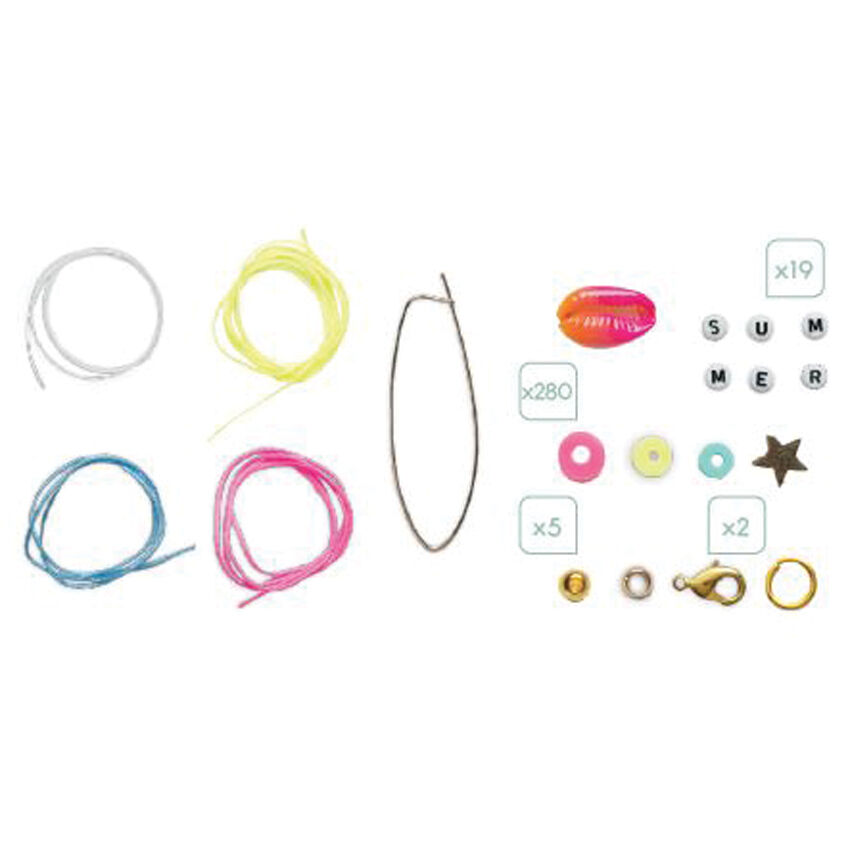 Included are 19 letter and icon beads to add the messages of love, happy, star and summer and 5 coloured strings and jewellery fasteners for threading to complete your creations. One of many in the Janod craft range.