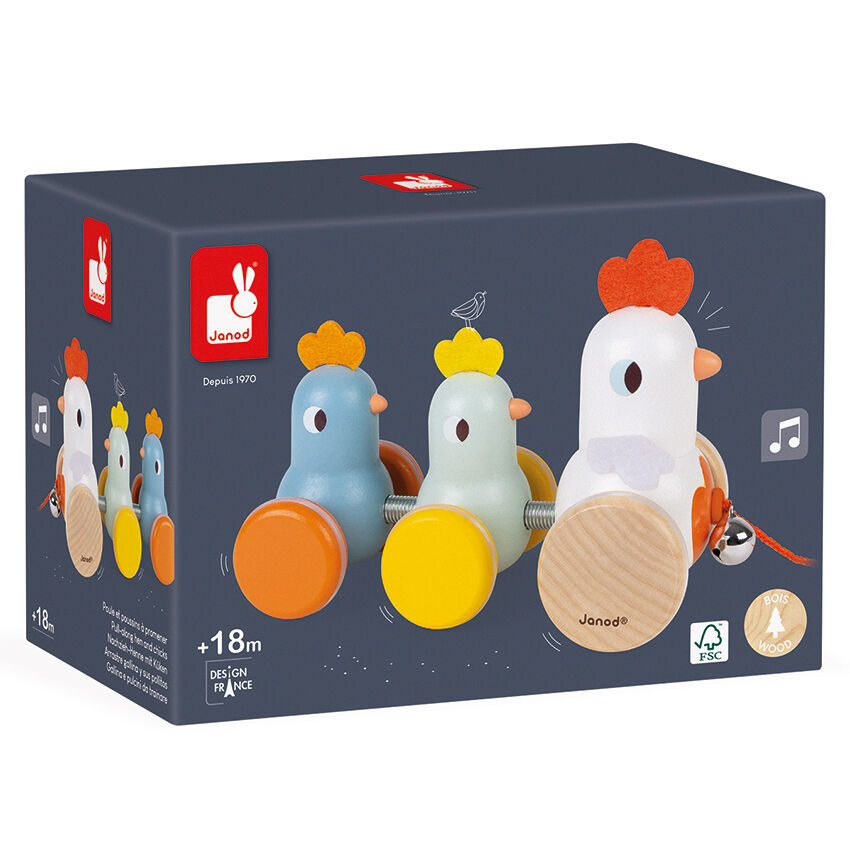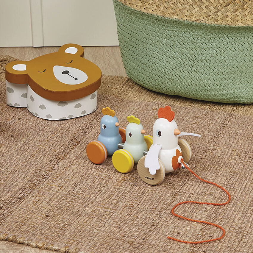 A perfect companion while learning to walk, the Janod Pull Along Hen Family will be a nursery favourite!